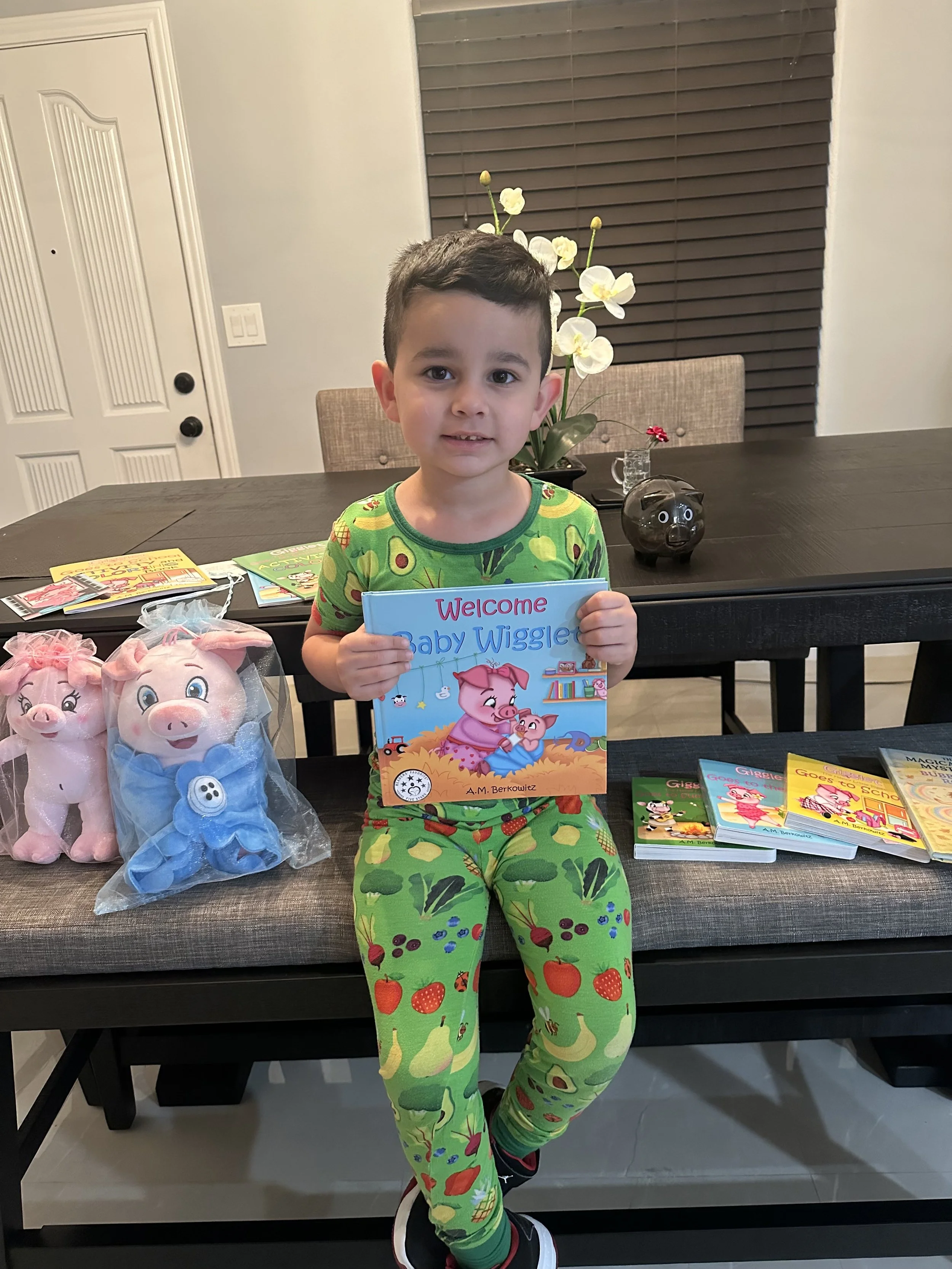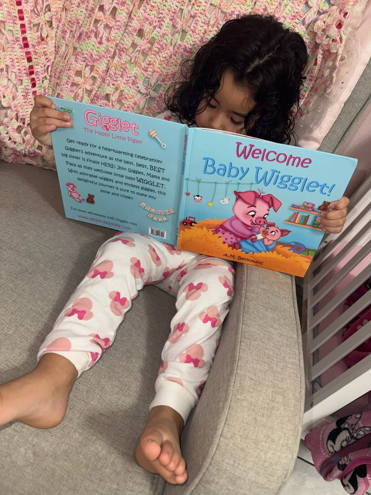Hi! My name is Gigglet! I’m the happiest little piglet in all the land! I live on a beautiful farm with my mama, papa and lots of other farm animal friends that I can’t wait for you to meet!